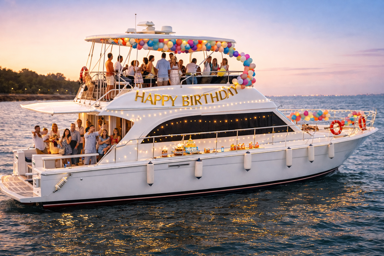 Celebrate your birthday on a private yacht with music, decorations, and stunning sea views.